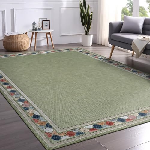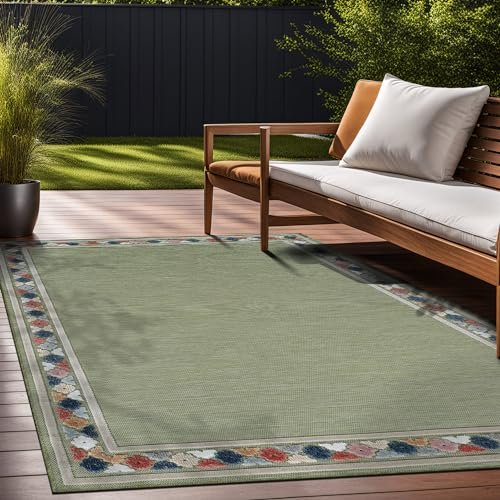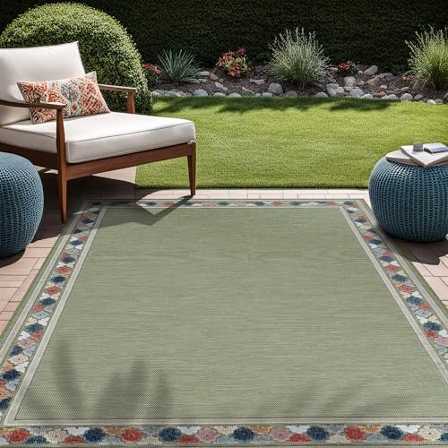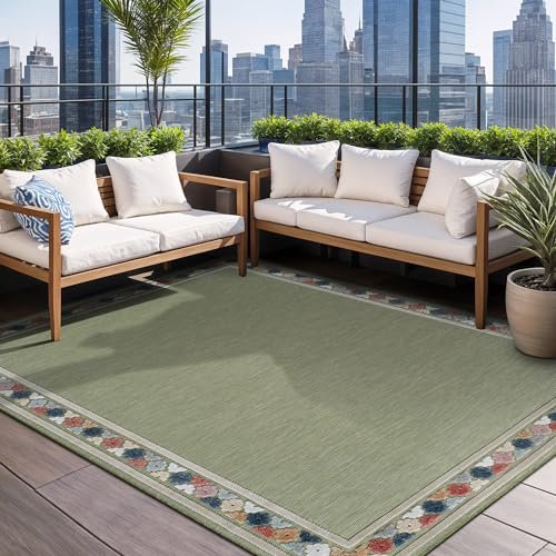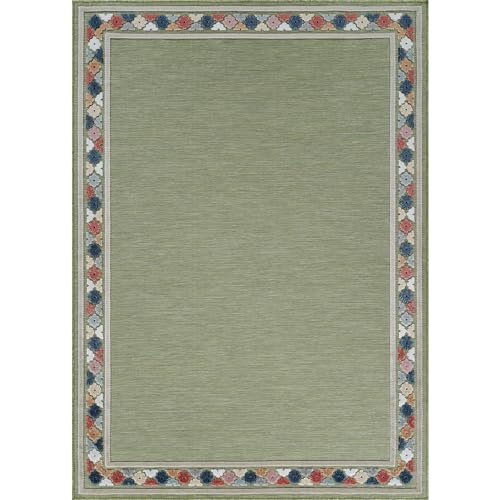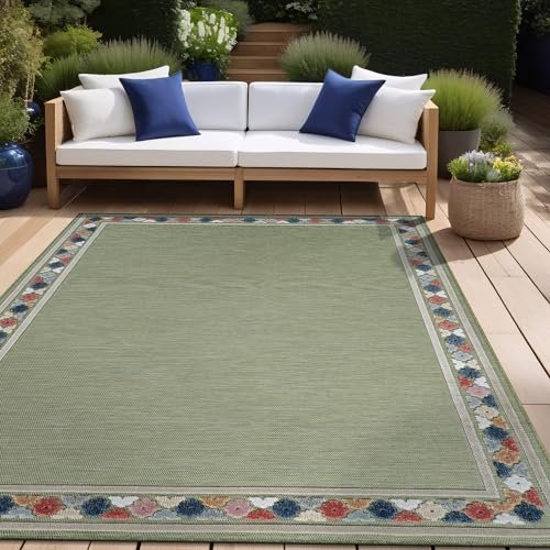 Beverly Rug Outdoor Rug 8×10 Modern Bordered Area Rugs for Indoor and Outdoor Patio Easy to Clean Non Shedding Living Room Porch Garden Washable Outside Carpet (8 x 10 Green)