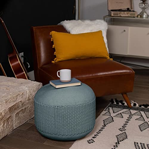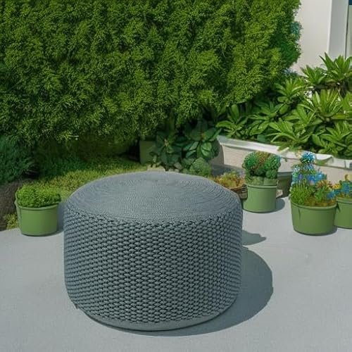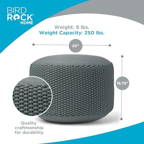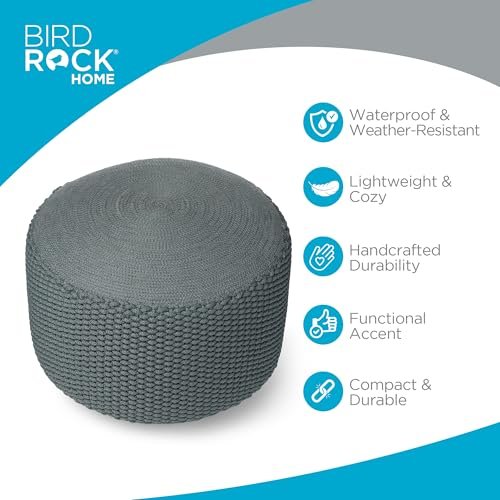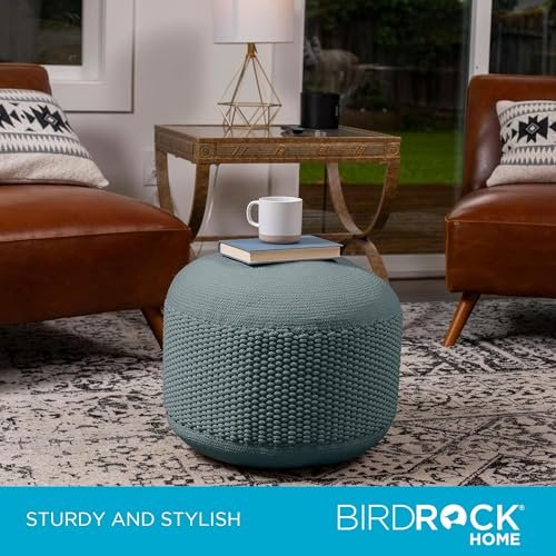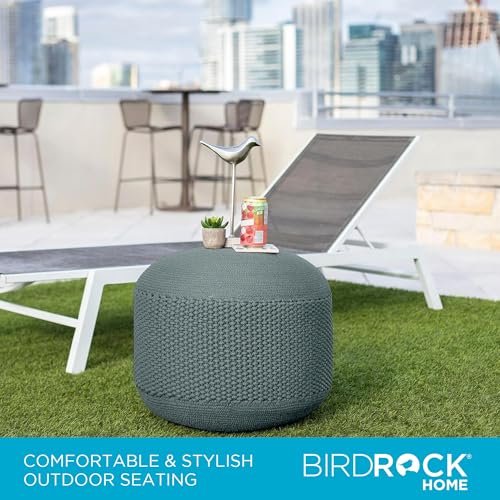 BIRDROCK HOME Outdoor Pouf Ottoman | Hand Woven Waterproof Foot Stool with Bead Bag Filling | Boho Foot Rest for Patio, Living Room, Porch & Outdoor Seating | Lightweight, Soft Stuffed Chair | Mist