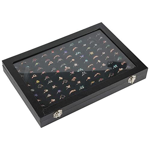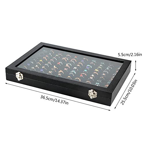 Bivisen Ring Display Case Organizer Box with Transparent Lid, 100 Slots Ring Storage Display Box Case Tray Holder PU Leather Black