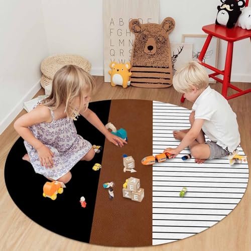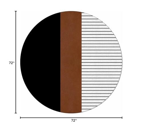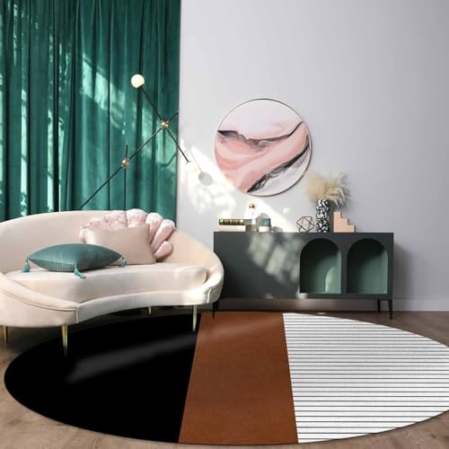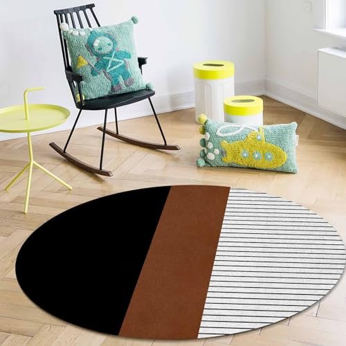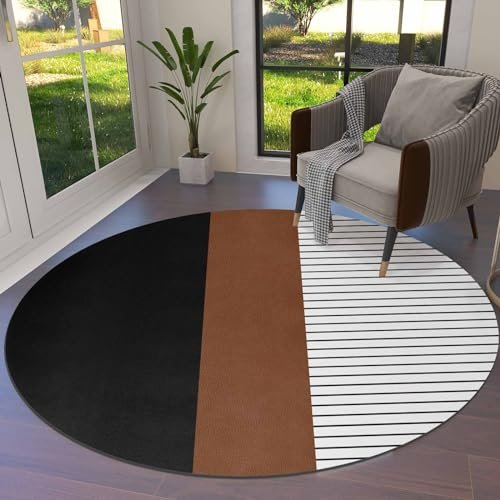 Black Brown Round Area Rug 6ft Carpet Runner Rug for Bedroom,Kitchen,Bathroom,Living/Dining/Laundry Room,Office,Area+Rug Large Bath Door Desk Floor Mat Boho White Geometric Stripes Bohemia Modern