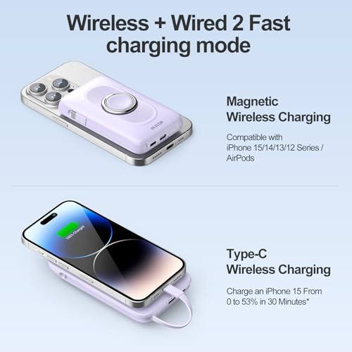 ⚡ Innovative Smart Charging Mode: Our power bank tackles issues with wireless charging, including overheating and slow charging conversion. Equipped with a USB-C cable and an iOS cable, it automatically switches to the best charging mode upon connection, ensuring a safe and efficient charging environment. Bid farewell to slow charging or overheating concerns that might affect your user experience.