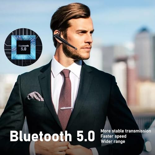 bluetooth headset bluetooth earpiece noise cancelling bluetooth headset for cell phones handsfree 10H one ear wireless headphones with microphones bluetooth phone earpiece one button mute (Black)