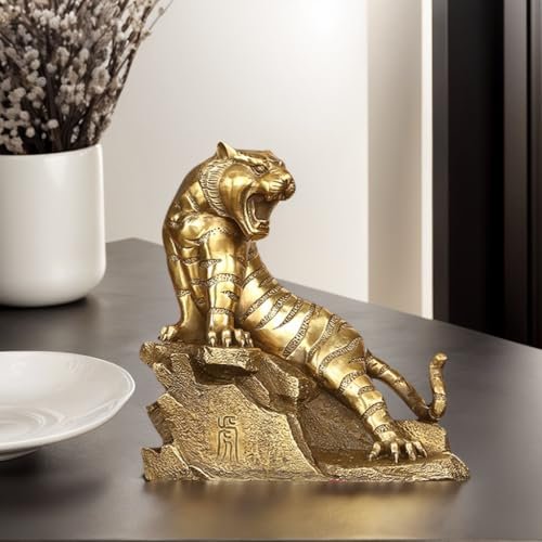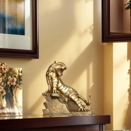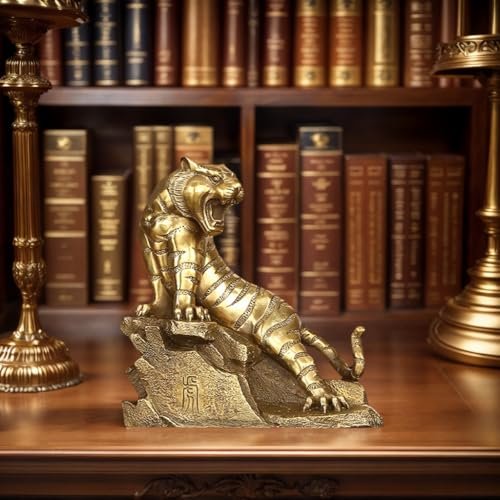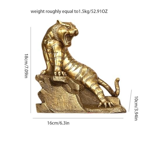 Brass Tiger Figurine – Chinese Zodiac Tiger Statue – Feng Shui Office Desk Decor – Symbol of Strength and Success – Business Gift for Boss or Men