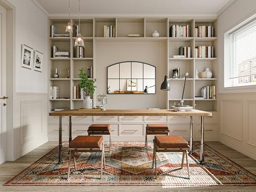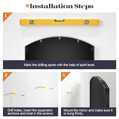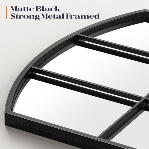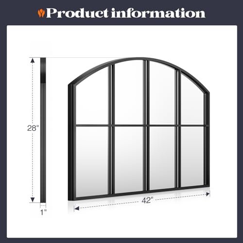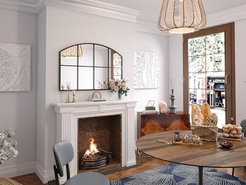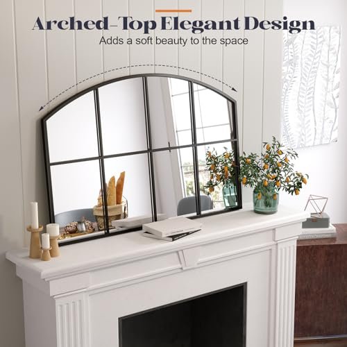 Brauthon Wide Window Pane Mirror, 42″ x 28″ Black Arched Mirrors for Wall, Grid Wall Mirror Decorative Large Mirrors for Living Room Bedroom Farmhouse Fireplace Hallway Entryway