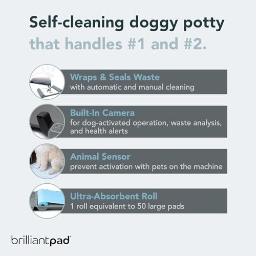 BrilliantPad Smart Indoor Dog Potty for Small Pets | Self Cleaning with Odor Control, AI Health Monitoring, Puppy Training Alternative to Grass Turf | Includes 1 Absorbent Pad Roll & Smartphone App