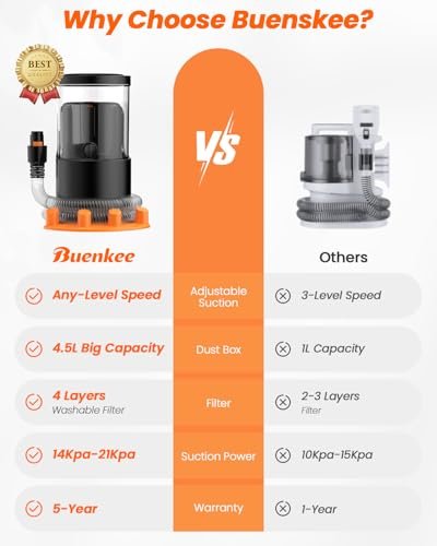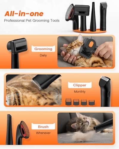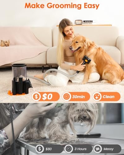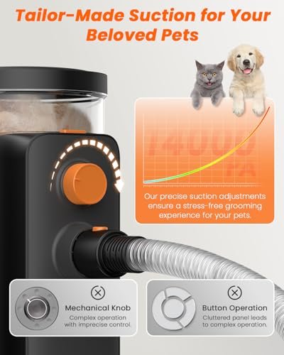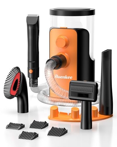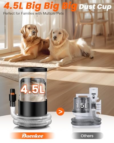 buenkee Dog Grooming Vacuum, 4.5L Extra-Large Dust Cup Dog Grooming Kit, 14000Pa High-Suction Pet Groomer with Clippers, Low-Noise All-in-One Shedding Control Set for Home Use