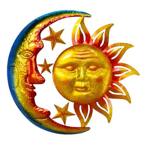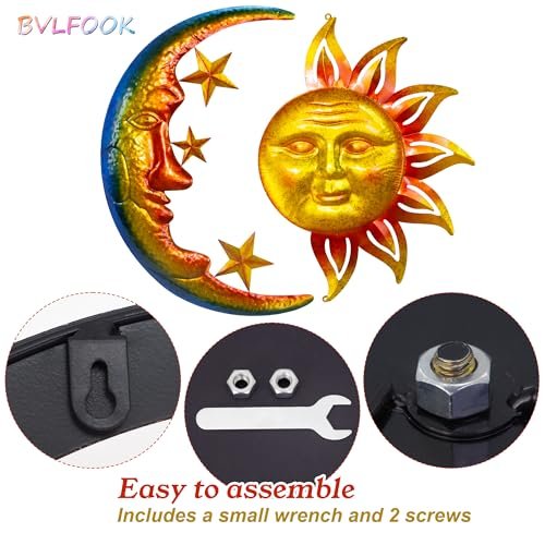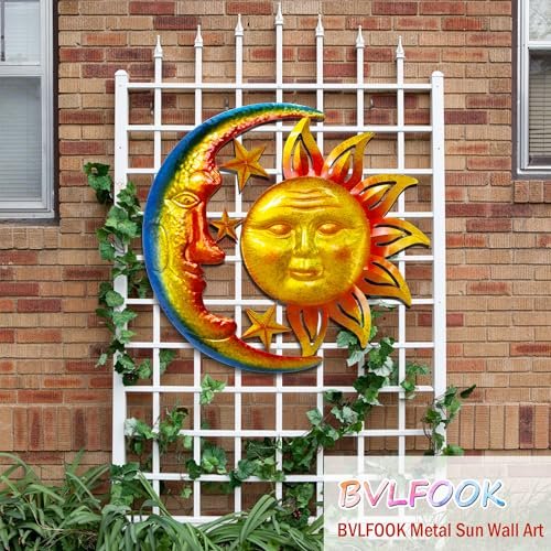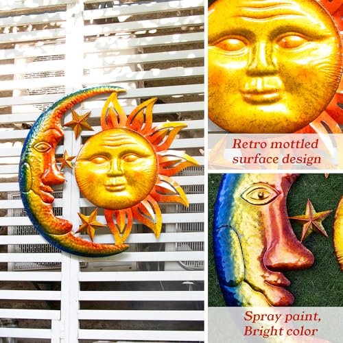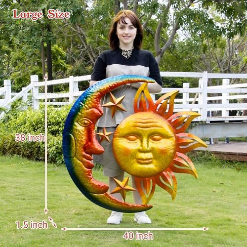 BVLFOOK 40-in Large Wall Art Decor, Sun Moon Metal Wall Decor With Glass, Outdoor Indoor Wall Decorations for Patio Yard Garden Fence Living Room Bedroom