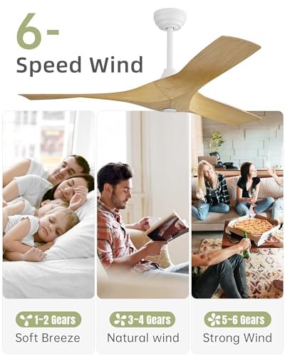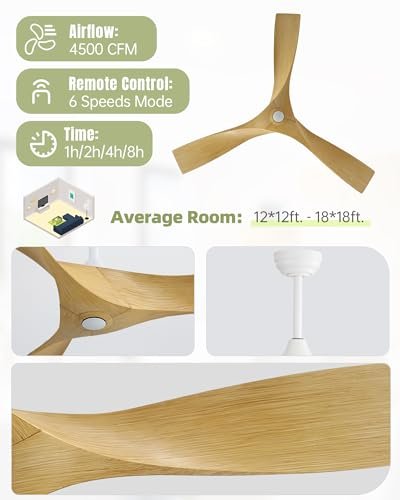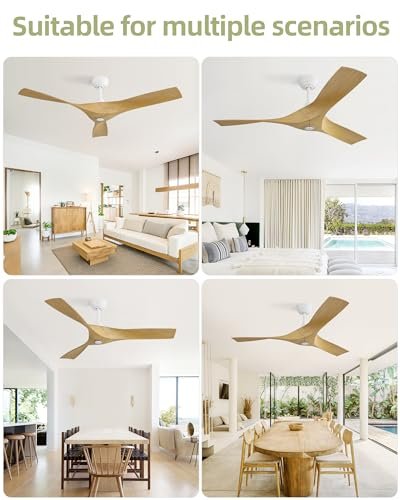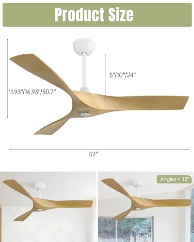 CACI Mall 52 Inch Ceiling Fan No Light, 3 Blades Ceiling Fans Without Light, Low Profile Downrod Mount Ceiling Fans with Remote, for Indoor/Outdoor, Patio,Garage,Living Room,Bedroom