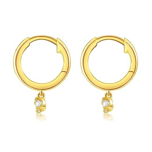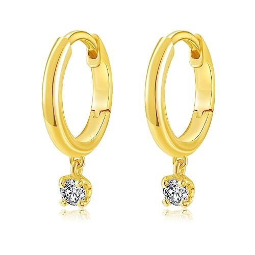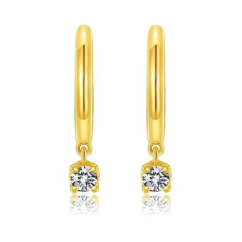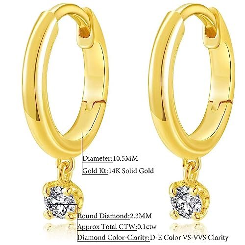 Caratant 14k Solid Gold Diamond Earrings Series,DEF VS~VVS, No fading, No allergies, Non gold-plating,Lab grown Diamond (Diamond Drop Huggie Earrings (Yellow))