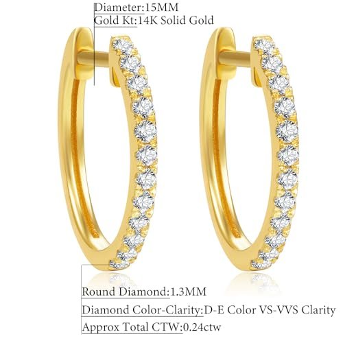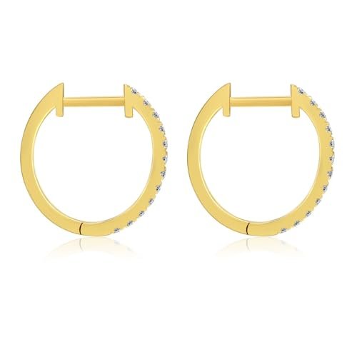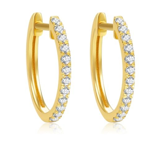 Caratant 14k Solid Gold Diamond Earrings Series,DEF VS~VVS, No fading, No allergies, Non gold-plating,Lab grown Diamond (Diamond Pavé Huggie Large Earrings (Yellow))