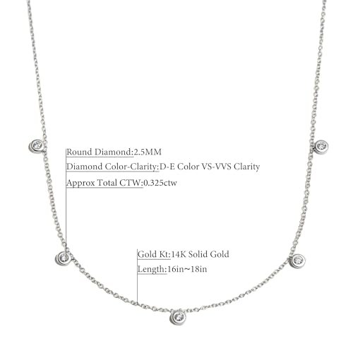 Caratant 14k Solid Gold Diamond Solitaire Station Necklace Series,No fading, No allergies, Non gold-plating,Lab grown Diamond, DEF VS~VVS,Lobster buckle (Five-Stone Necklace (White))