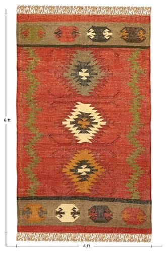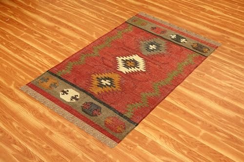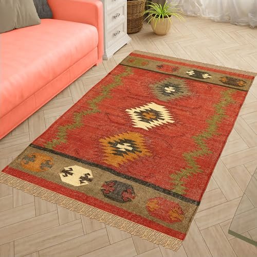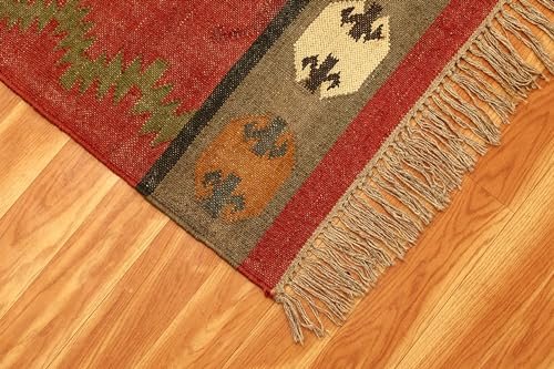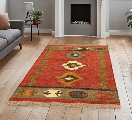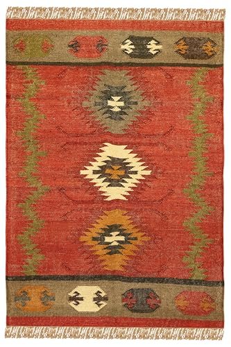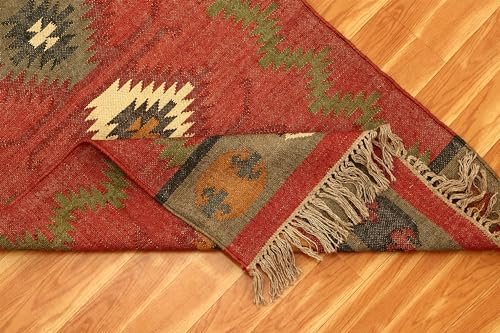 CASAVANI – 8×11 Area Rug Reversible Kilim Rug Red Multicolor Wool & Jute Hand Woven Rug Indoor Outdoor Rug Flatweave Rug High Traffic Area Lake House Bedroom Dining Room Living Room