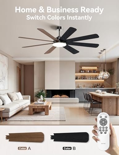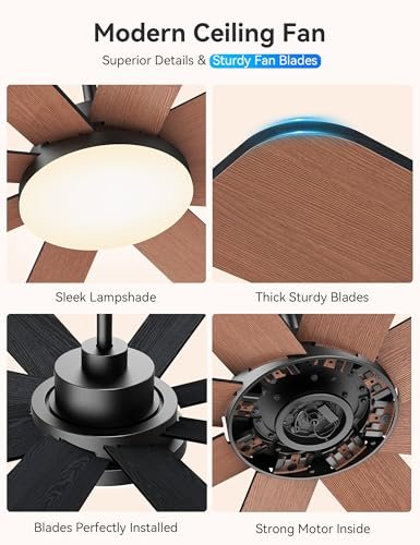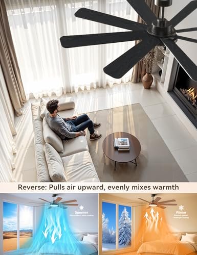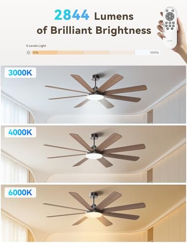 Ceiling Fans with Lights and Remote Control 72 Inch, 6 Speeds, 8 Blades, 2844 LM, 3CCT Dimmable LED, Reversible DC Motor, Black Quick-Fit Low Profile Ceiling Fan for Bedroom Living Room Indoor Outdoor