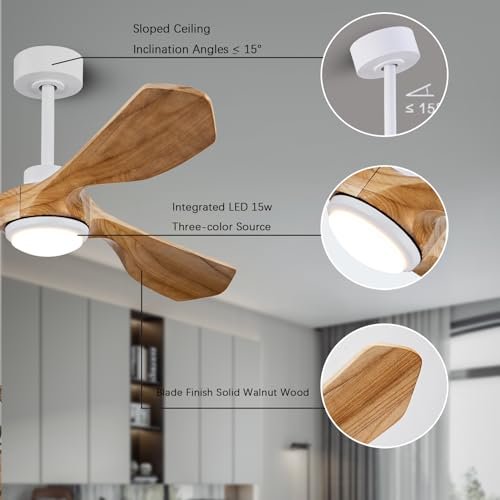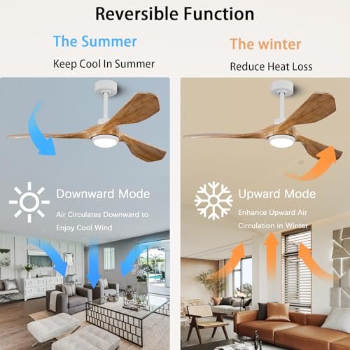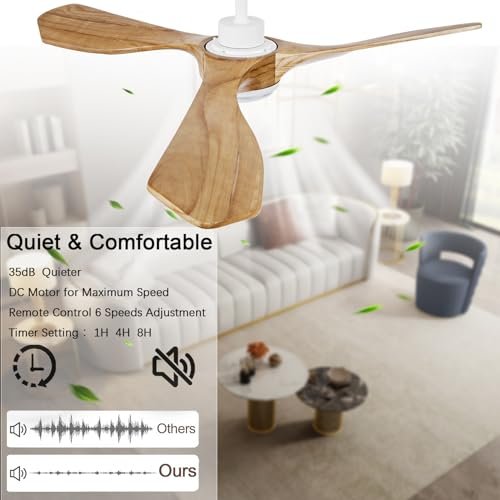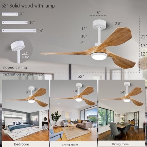 Ceiling Fans with Lights and Remote,52 Inch Unique Wood Ceiling Fan with Noiseless Reversible DC Motor,3 Blades,3 Downrods, for Farmhouse,Patio Living Room, Bedroom, Office,Indoor Outdoor(Raw Wood)
