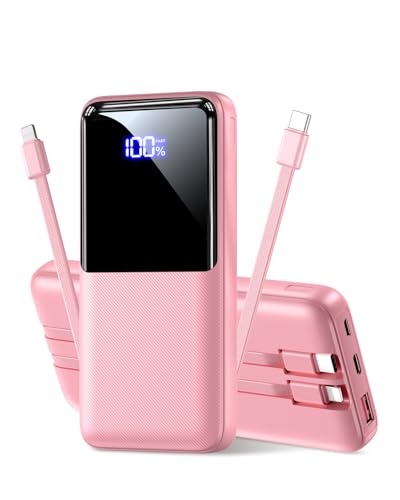 Power Banks with Built-in Cables for Tangle-Free Charging: Say goodbye to cable clutter! Built-in USB C cable and iOS cable widely compatible with iPhone, Samsung, Android Phone/tablets and more smart devices. This portable charger eliminates the hassle of carrying a bunch of cables, making it the most powerful travel essential for you.** (a. Our product comes in a single pack b. Our product does not come with an AC plug.)**