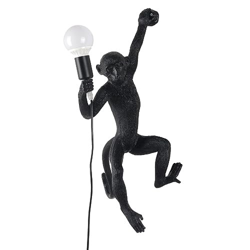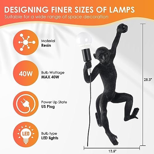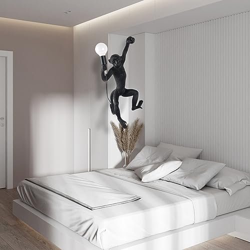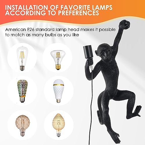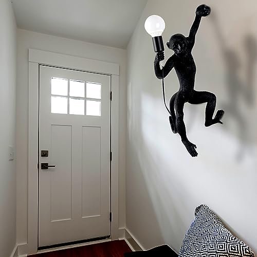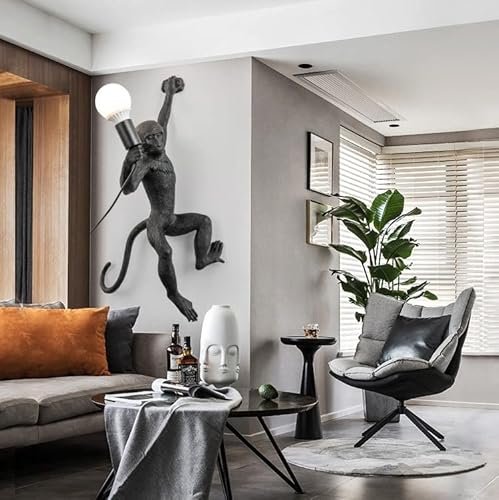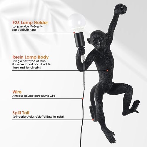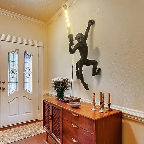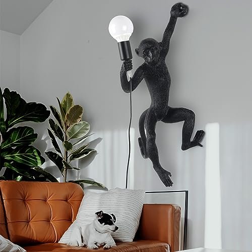 CHABEI Modern Resin Monkey Wall Lamp & Pendant Light – Hemp Rope Vintage Lamp for Home Decor – Dining, Living Room, Bedroom, Entryway (Black)