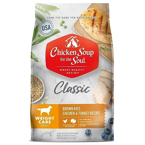 Chicken Soup for the Soul All Natural Premium Weight Care Adult Dry Dog Food, Real Meat First Ingredient, No By-Products, Hi Fiber/Low Fat Support Ideal Weight, Brown Rice, Chicken & Turkey, 28lb