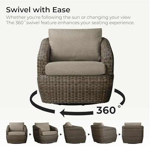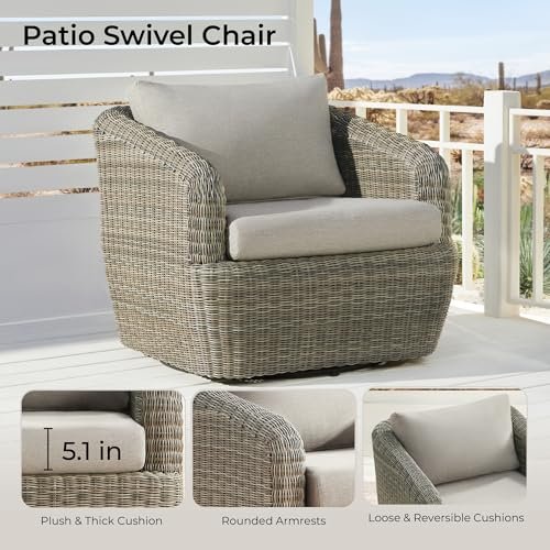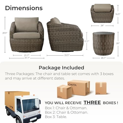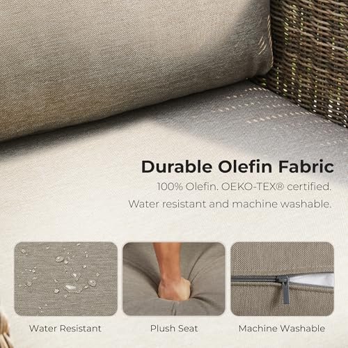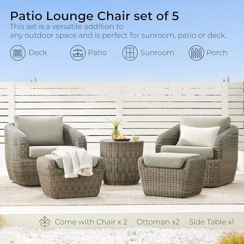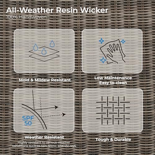 CHITA 5 Pieces Patio Wicker Furniture Set, Outdoor Rattan Bistro Set with Removable Thickened Cushions, Fully Assembled(Gray Cushions with Brownish Gray Wicker)