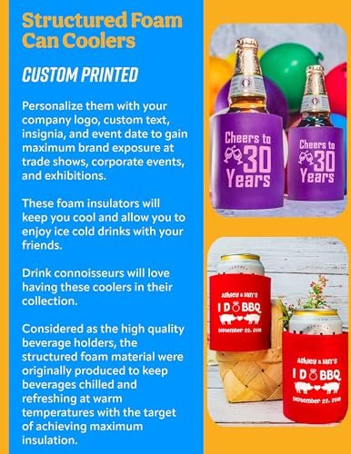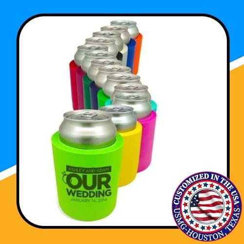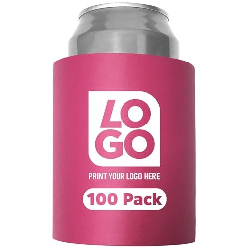 Classic foam custom can coolers with one-color print, great for gifts & promotions use for glass bottles & cans (Neon Pink, 100)
