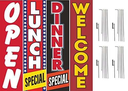 COBB PROMO Open Dinner Lunch Special Welcome Advertising Rectangle Boomer Feather Flags Complete Kits with 4 Flag Poles and 4 Ground Spikes