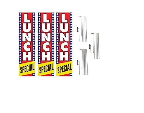 COBB PROMO Three Lunch Special Advertising Rectangle Boomer Feather Flags Complete Kits with Three Flag Poles and Three Ground Spikes