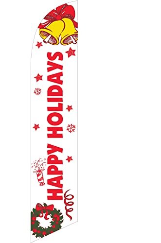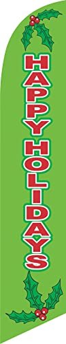 COBB PROMO Two Happy Holidays And Two Christmas Feather Flag Eye Catching Banner Sign for Business Marketing and Advertising Complete Set with 15 ft four Pole Kit and four Ground Spike