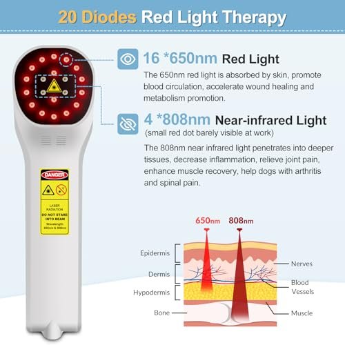 Cold Laser Therapy for Dogs 4x808nm and 16x650nm Veterinary Laser Therapy Machine, Red Light Laser Therapy for Pain Relief Arthritis Muscle Joints, Pet Laser Therapy at Home for Dogs, Cat and Horse