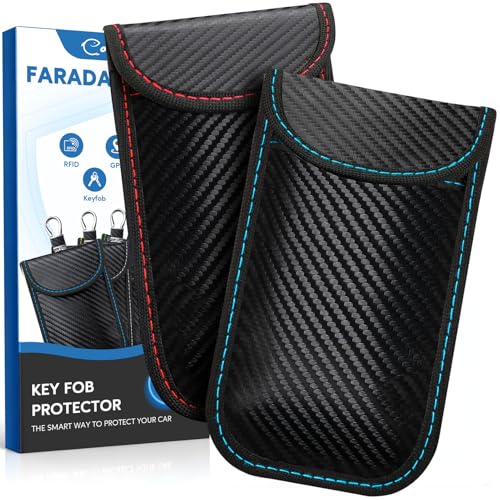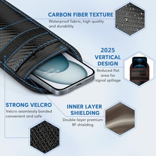 Coorattyes Faraday Bags for Phones and Car Key, Carbon Fiber Surface Signal Blocking Pouch, Go Dark Bags for Cell Phones, Car Key/WiFi/RFID/GPS Signal Blocker with Red Blue Stiching