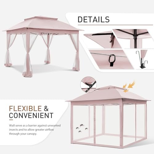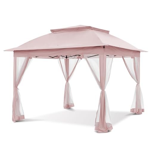COOS BAY 11×11 Pop-Up Instant Gazebo Tent with Mosquito Netting Outdoor Canopy Shelter with 121 Square Feet of Shade (Pink)