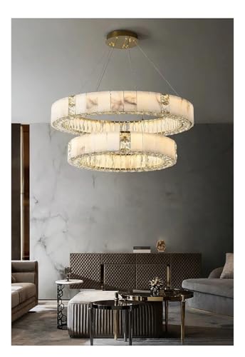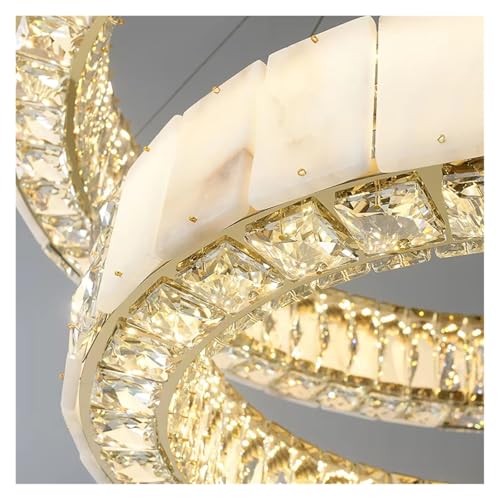 Stunning Design : The Multiple Circle Clear Crystal Mixed Natural Marble Chandelier showcases a luxurious round hanging lamp design, perfect for elevating the ambiance in any home decor setting