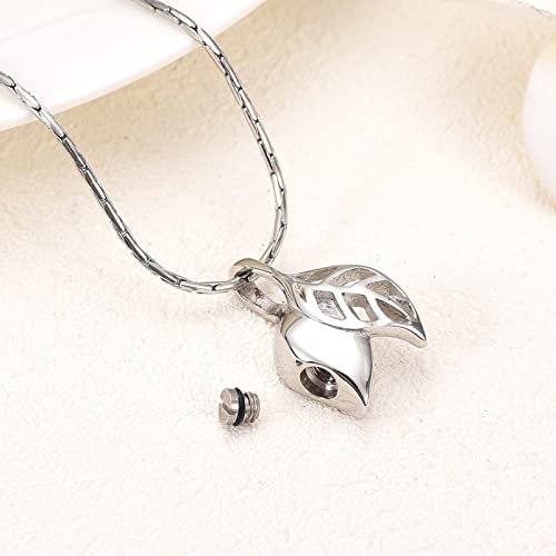 Cremation Jewelry Urn Necklace Stainless Steel Leaf Memorial Urn Necklace Hold Human/Pet Ashes Keepsake Cremation Jewelry Pendant Engrave,5 Pcs Necklace