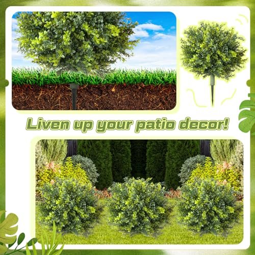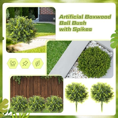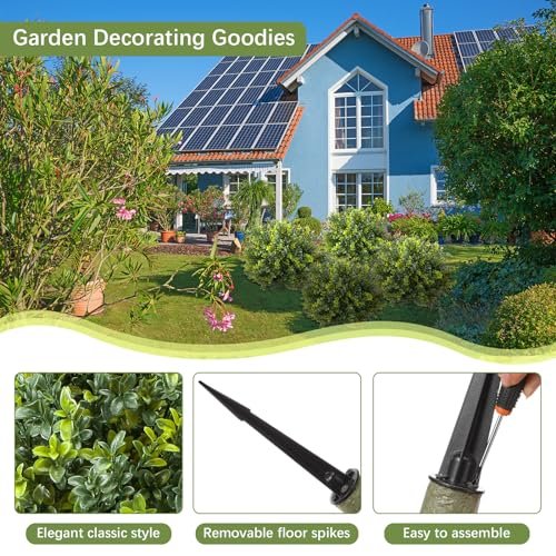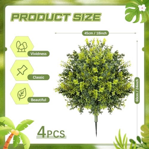 CroBlissful 4 Pack Artificial Boxwood Topiary Ball 24” Faux Boxwood Tree with Ground Spike UV Resistant Evergreen Bush Fake Outdoor Plants for Front Door Porch Garden Yard Wedding Indoor Decor