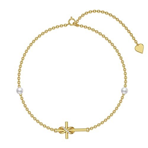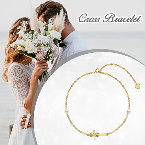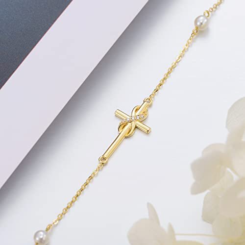 Cross Bracelet 14K Solid Gold Infinity Bracelet Confirmation Gift Religious Bracelet Jewelry for Women