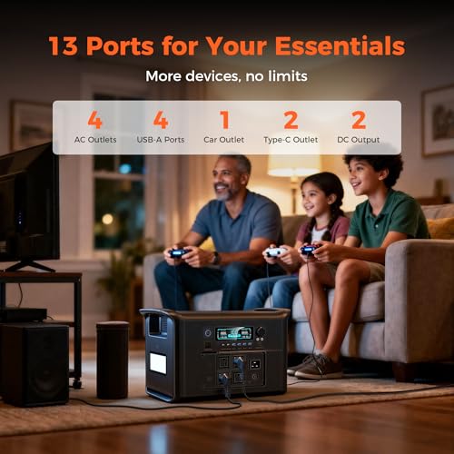 [High Capacity for Multiple Devices]: With a massive 2048Wh capacity, the portable power station can charge up to 13 devices simultaneously, including laptops, phones, and camping lights. Paired with the 200W high-efficiency solar panel, it guarantees a reliable power supply for outdoor adventures or emergencies.