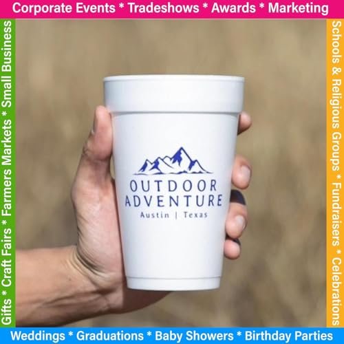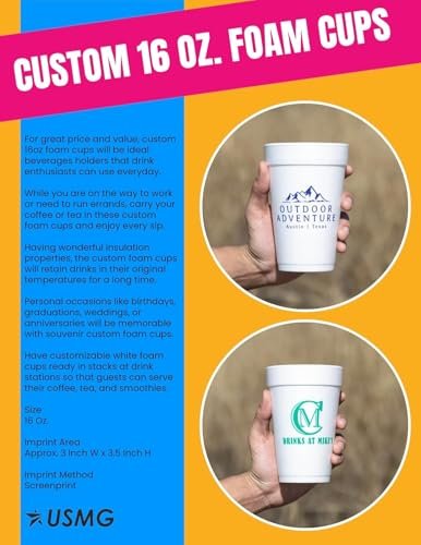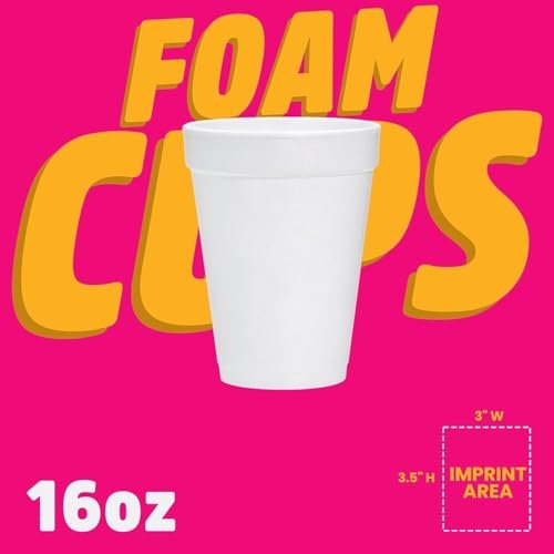 Custom Imprint 16 Oz. Styrofoam Cups with one-color imprint, ideal for parties, events, restaurants, and brand promotions. (1000 Foam Cups)