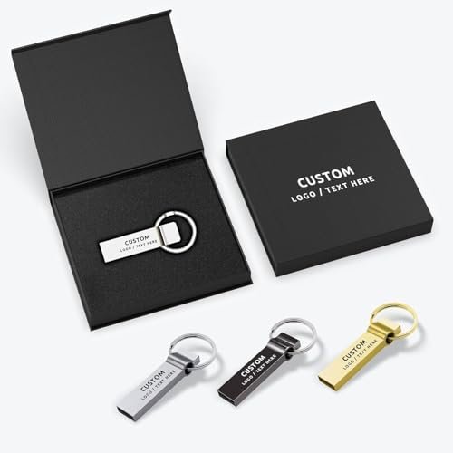 Custom Metal USB Flash Drive with Gift Box, 50 Pack Personalized USB 2.0 Thumb Drive Memory Stick with Keychain, Ideal for Businesses, Corporations, Photography & Music Studios (64, GB)