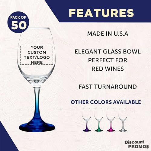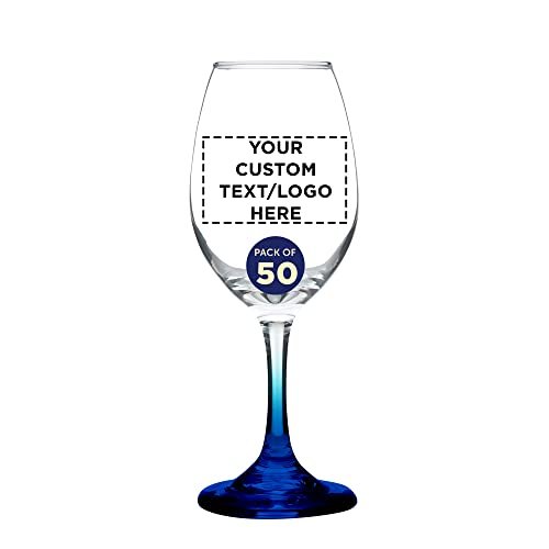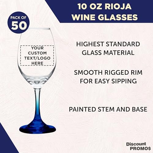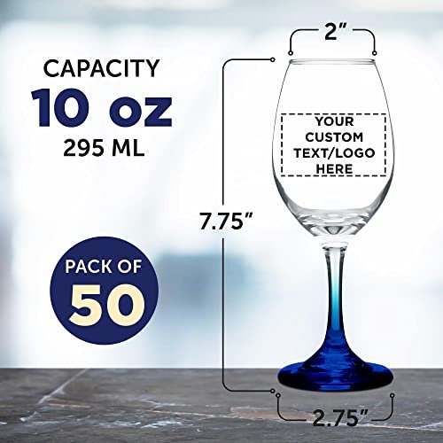 Custom Rioja Wine Glasses with Stem 10 oz. Set of 50, Personalized Bulk Pack – Color Bottom, Perfect for Wedding, Party Favors, Birthday, Bridal Shower Gifts – Blue