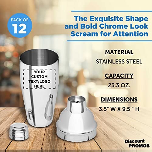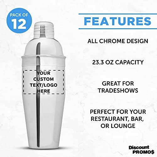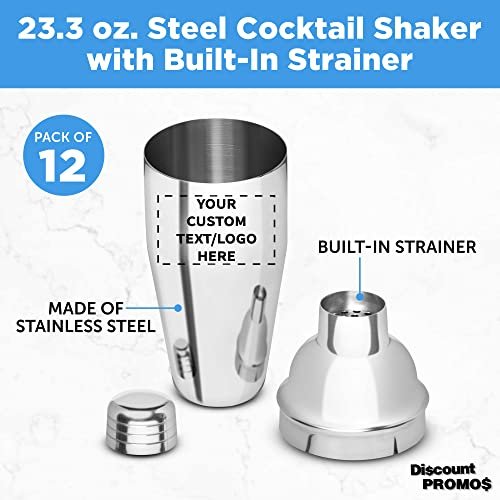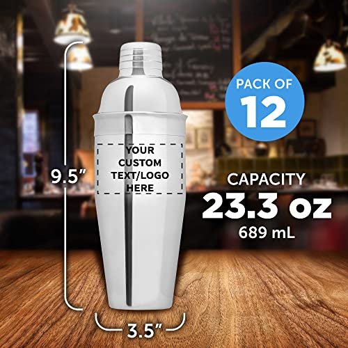 Custom Stainless Steel Shakers 23.3 oz. Set of 12, Personalized Bulk Pack – Bartender Kit, Perfect for Martini, Cocktails, Other Beverages – Stainless Steel