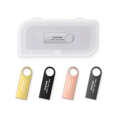 Custom USB Flash Drive, 50 Pack Personalized Metal Pen Drive USB 2.0 Memory Stick Thumb Drive, Ideal for Business Events, Corporate Gifts and Promotional Giveaways (64 GB,with Plastic Box)