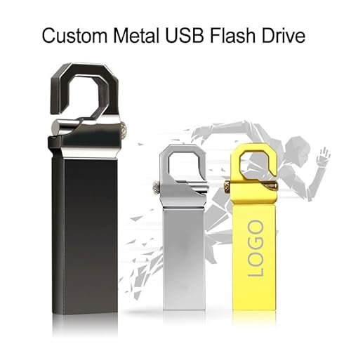 Custom USB Flash Drive, 50 Pack Personalized Metal Pen Drive USB 2.0 Memory Stick Thumb Drive with Hook, Ideal for Corporate Gifts, Business Events and Promotional Giveaways (256 MB,with Gift Box)