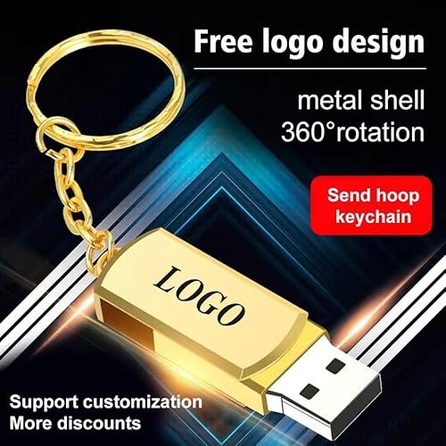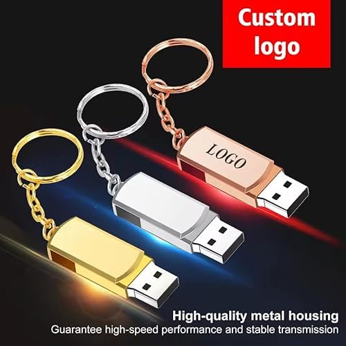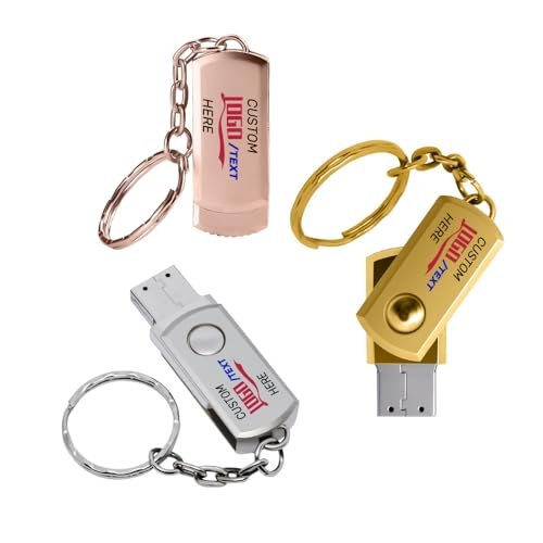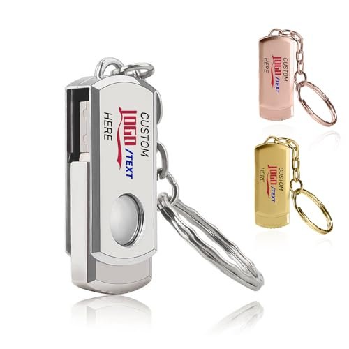 Custom USB Flash Drive, Personalized Metal Swivel USB 2.0 Memory Stick Thumb Drive with Keychain, Ideal for Corporate Gifts, Promotional Giveaways, Photography & Music Studios (1 GB,100 PCS)