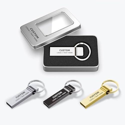 Custom USB Flash Drive with Metal Box, 50 Pack Personalized Metal USB 2.0 Thumb Drive Memory Stick with Keychain, Ideal for Businesses, Corporations and Educational Institutions (32, GB)