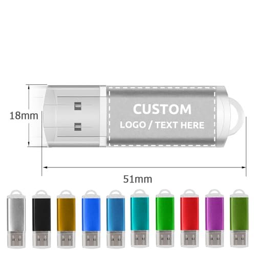 Custom USB Flash Drives, Bulk Personalized USB 2.0 Memory Stick Thumb Drive, Ideal for Corporation Business, Educational Institution, Photography & Music Studio and Non-Profits (128 GB,50 PCS)