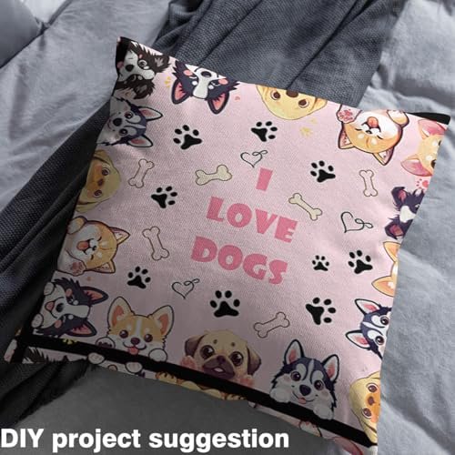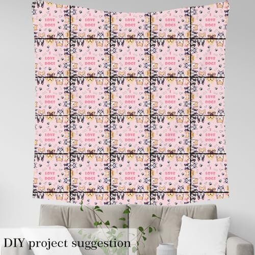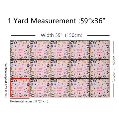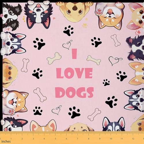 Cute Dog Outdoor Fabric by The Yard,Cartoon Puppy Pet Decor for Women Girls Craft Lover,Dog Paw Bone Animals Upholstery Fabric for Quilting Sewing Supplies,5 Yards,180″ L x 59″ W