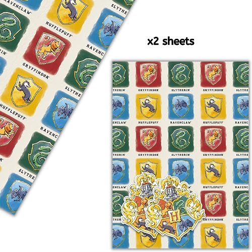 Danilo Promotions LTD Official Harry Potter Luxury 2 Sheet 2 Tag Wrapping Paper, Harry Potter