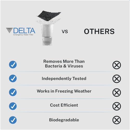 Delta Emergency Water Filter 2 pk. Personal Water Filter For Camping, Hiking, Backpacking, and Emergency Preparedness. Lightweight, Reusable, and Biodegradable- Perfect for Outdoor Wilderness Survival