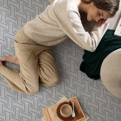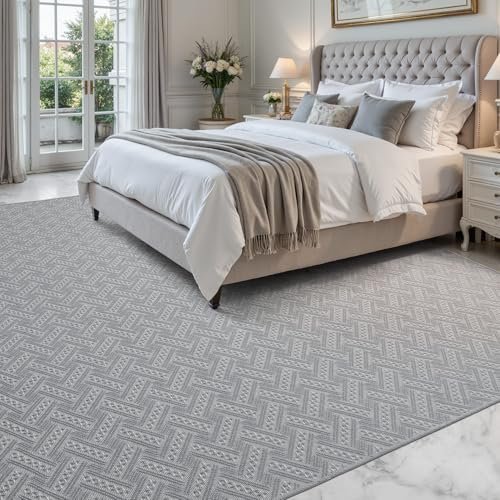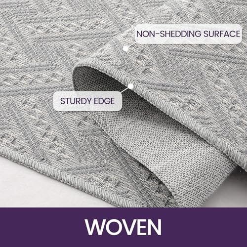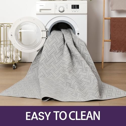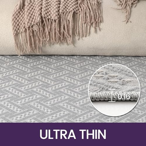 DEXI Area Rug 8×12, Modern Soft Indoor Rugs for Bedroom Dining Kitchen Living Room Home Decor, Non-Slip Absorbent Washable Non Shedding Thin Carpet Floor Mat, Basket Weave Grey