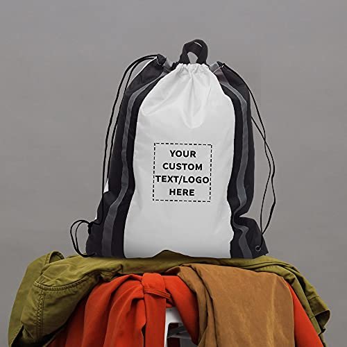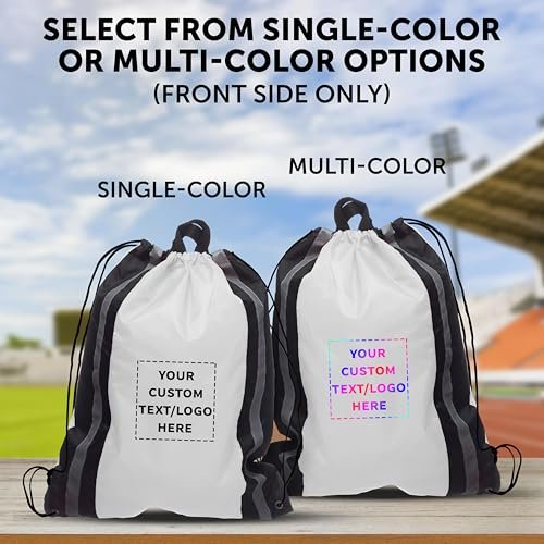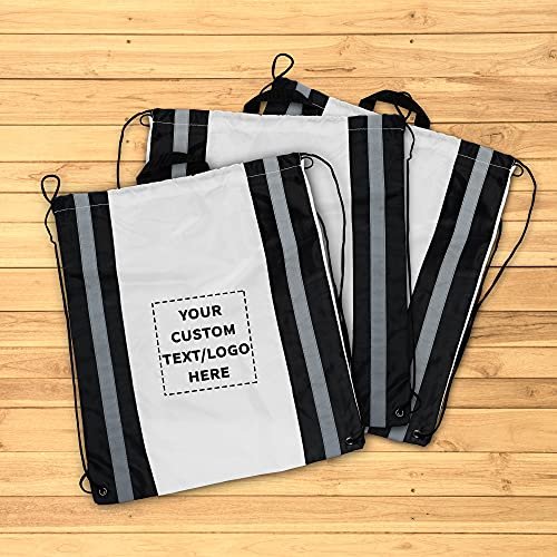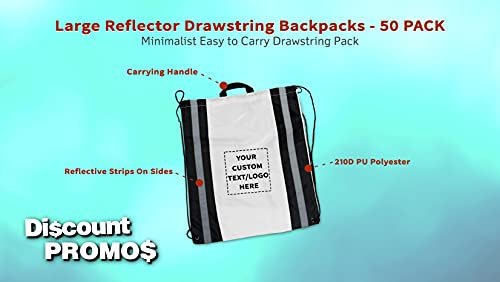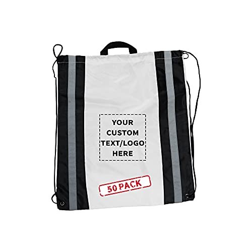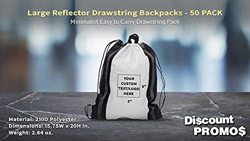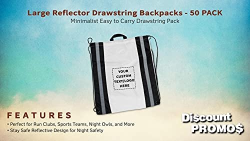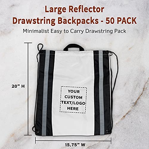 DISCOUNT PROMOS Custom Large Reflector Drawstring Backpacks Set of 50, Personalized Bulk Pack – Bring Everywhere You Go, Perfect for Travellers and Great for Everyday Use – White