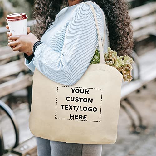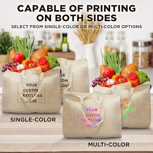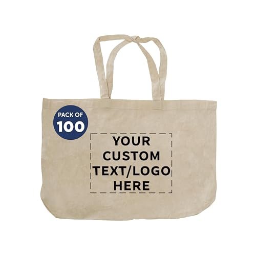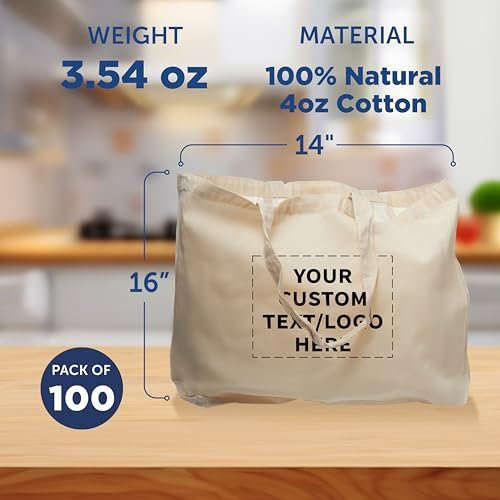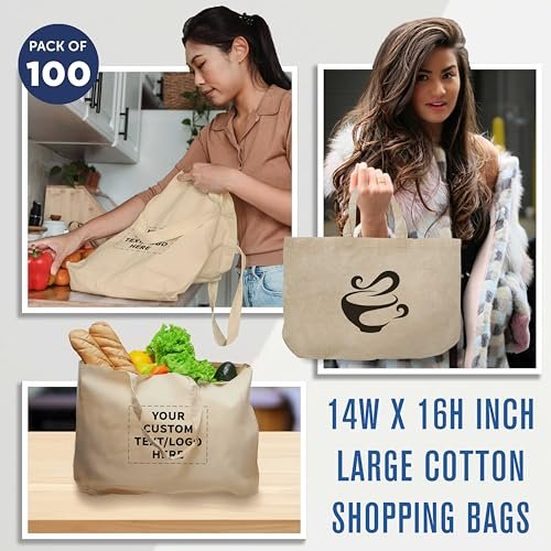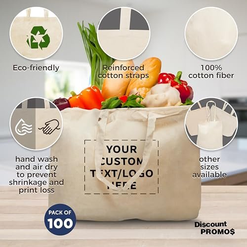 DISCOUNT PROMOS Custom Natural Cotton Fiber Tote Bags (Set of 100) – Personalized, Reusable & Eco-Friendly – Perfect for Grocery, Promotions, Branding – Natural Color, 16″x14″X4.5″, 5 OZ Cotton