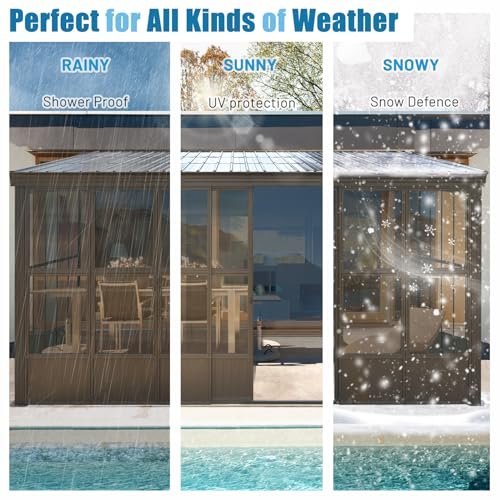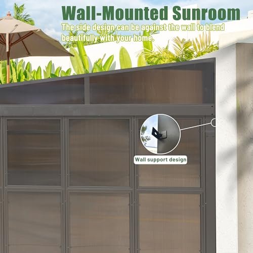 Domi 12x16FT Sunroom,Wall Mounted Gazebo Solarium with Front Door, Both Side Entrance, Galvanized Steel Sloping Roof, Moveable PC Screen, Outdoor Permanent Sun Room Lean to Gazebo for Deck Patio